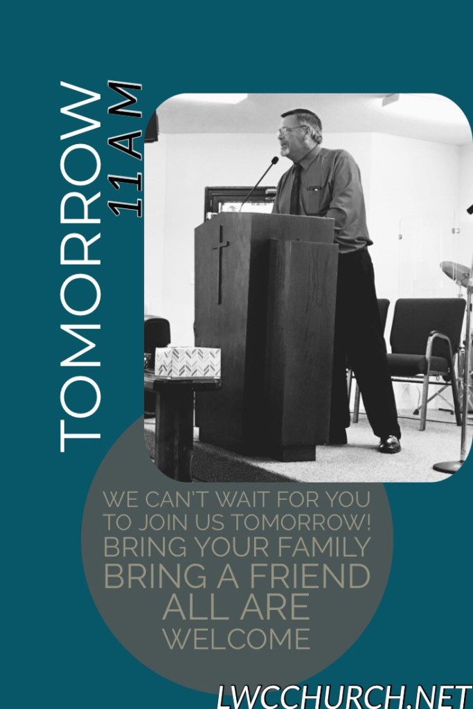Church Tomorrow! Posted byLWCCHURCH.NET/gfjministryMay 30, 2020Posted inUncategorized Share this: Click to share on X (Opens in new window) X Click to share on Facebook (Opens in new window) Facebook Click to email a link to a friend (Opens in new window) Email Click to print (Opens in new window) Print Like Loading... Related